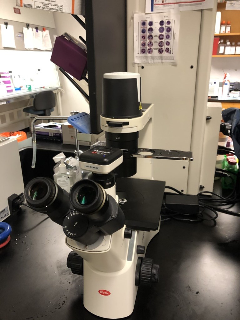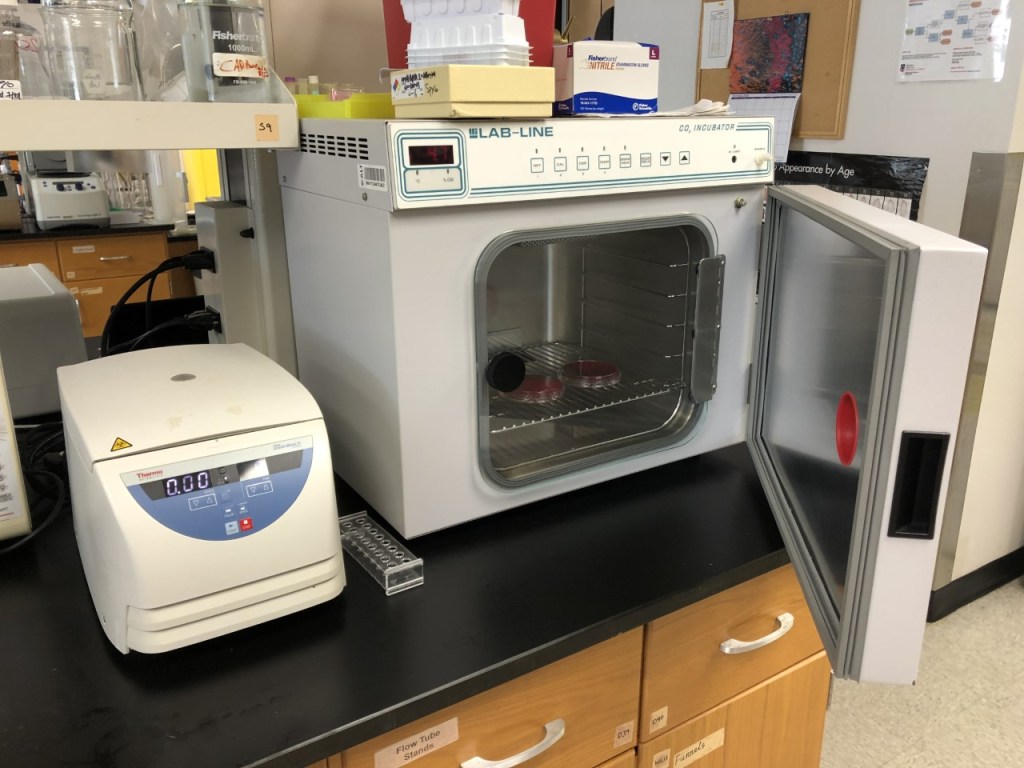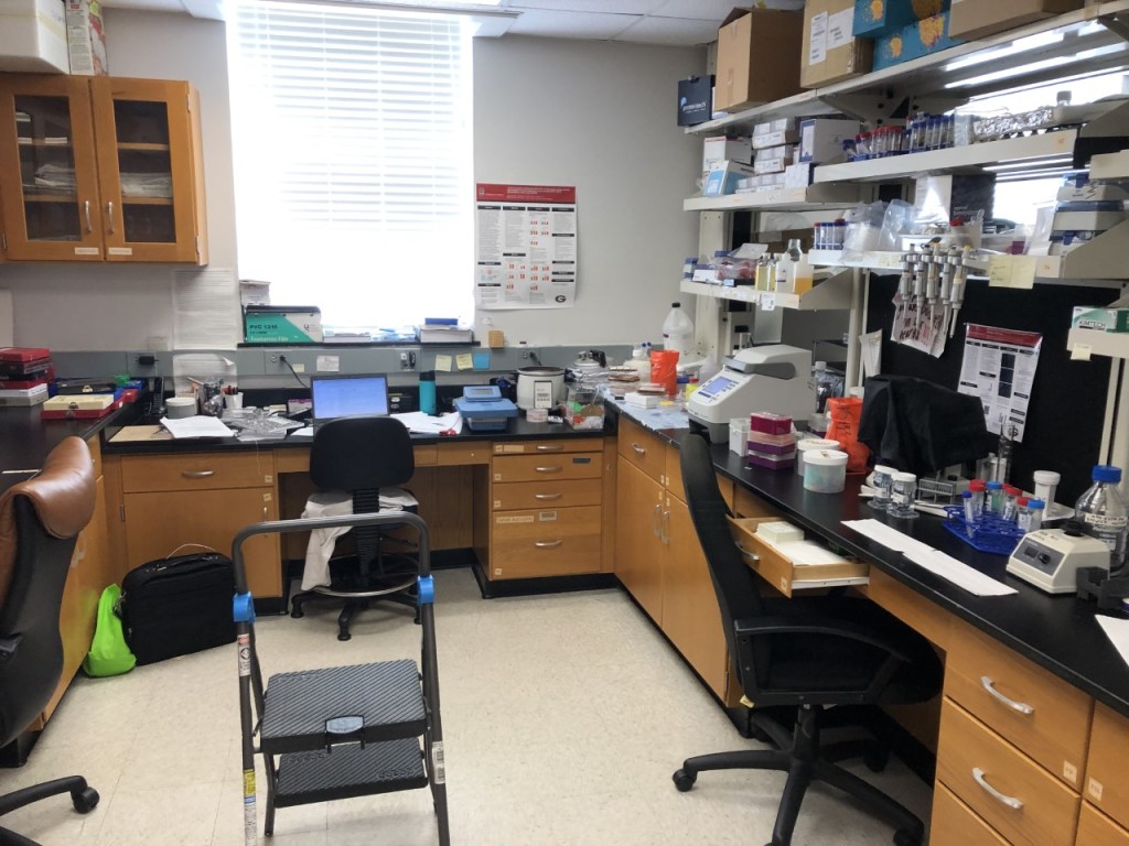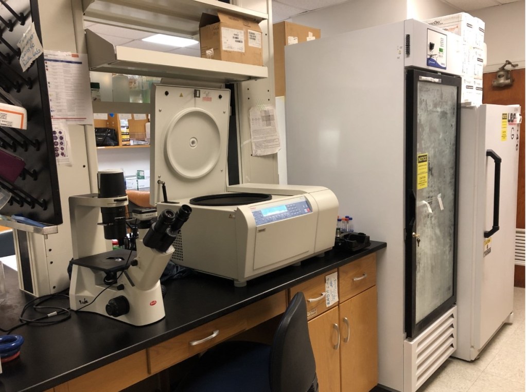 Cell preparatory area with microscope, centrifuge, refrigerator and -20C freezer…