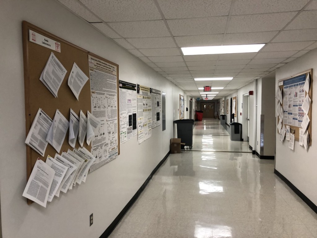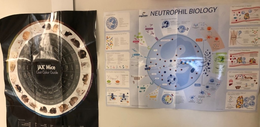 On the way from the larger room to the small laboratory room scientific info posters related to the research conducted here decorate the wall…